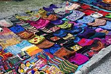 Communities particularly noted for their embroidered textiles include Magdalenas, Larráinzar, Venustiano Carranza and Sibaca.[1] Zinacatán is known for its production of handcrafts, with the making of brightly embroidered garments a main economic activity. The traditional garb for men includes a serape woven in dark colors such as blue, green or purple with floral accents. For women, it includes blouses and skirts in the same tones as well as rebozos (or chals) embroidered with flowers.[6][13] Textiles of wool and cotton woven on backstrap looms are made in San Juan Chamula, San Andres Larrainzar, Tuxtla Gutierrez, San Pedro Chenalho, Bochil and Teopisca. Traditional outfits for men and women are sewn in Pantelho, Oxchuc and Huixtan.[4]