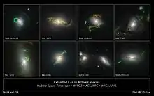In February 2018, Treister et al. studied the galaxy Mrk 463 with VLT/MUSE, VLT/Sinfoni and ALMA. This study found extended emissions around this galaxy and that the supermassive black hole accretion rate on the Mrk 463E nucleus changed by a factor 3–20 in the last 40,000 years, similar to other Voorwerpje galaxies.[16] Galaxy zoo volunteers did identify this galaxy as a candidate Voorwerpje, but the [O III] emission was already described by earlier studies.[13]