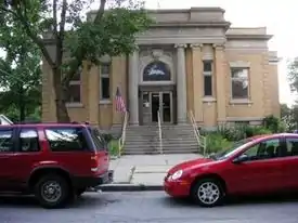 The 2009 official web site of Hartford City shows three main pictures: Civil War re-enactors, a basketball player, and the courthouse, illustrating what is important to the city and its culture. Hartford City's town square is a “living museum”, and is listed on the National Register of Historic Places as the Hartford City Courthouse Square Historic District. Many of the buildings were built during the gas boom in the late 19th century, and are examples of architectural styles used at that time, including Romanesque Revival, Commercial Italianate, Renaissance Revival, and Queen Anne.[19] The Blackford County Courthouse and First Presbyterian Church are also listed on the National Register of Historic Places.[20] Adding to the historical atmosphere, the courthouse lawn contains war monuments on each corner. The town has a small museum and library housed in the Blackford County Historical Society building.[21] The city's main public library, the Hartford City Public Library, is a Carnegie library that began with funding from Andrew Carnegie in 1903.[22]