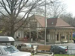 The station building was originally built in 1915 (or 1914 according to the MTA[6]) by the Warren and Wetmore architectural firm for the New York Central Railroad, as a replacement for a smaller wooden depot built by the New York and Harlem Railroad originally known as "Hart's Corner Station."[7] Unlike most Warren & Wetmore-built NYC stations, which were grand cathedral-like structures using Beaux-Arts architecture, the station in particular was strictly of the Tudor Revival style. The station was named after the valley owned by the Harts.[8]: 28