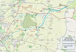 Today the watercourses of Hatfield Chase are managed by the Corporation of the Level of Hatfield Chase Internal Drainage Board. They are responsible for the drainage of an area of 30.8 square miles (79.8 km2), and the maintenance of 84.5 miles (136.0 km) of watercourses,[14] which includes the operation of nine pumping stations.[15] In addition, the Environment Agency maintain and operate several pumping stations within the area where the water is pumped into high-level carriers, which consist of embanked waterways where the water level is generally above that of the surrounding land.[16]