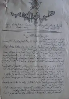 Hayat ech Chaab (Arabic: حياة الشعب, 'The Life of the People') was an Arabic language weekly newspaper issued by the Moroccan Communist Party (PCM) 1945–1956.[1][2] Hayat ech Chaab was published by Ali Yata.[3] The first issue was published in May 1945. Hayat ech Chaab was published clandestinely (the Communist Party was banned at the time), and printed on roneograph.[1][2]