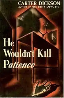 He Wouldn't Kill Patience is a mystery novel by the American writer John Dickson Carr, who published it under the name of Carter Dickson. It is a locked room mystery and features the series detective Sir Henry Merrivale and his long-time associate, Scotland Yard's Chief Inspector Humphrey Masters.