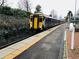 The single platform is equipped with a shelter, a bench, a help point and bike racks. The station has step-free access.[8] As there are no facilities to purchase tickets, passengers must buy one in advance, or from the guard on the train.
