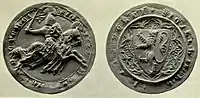 ![]() Seal of Henry Percy from the Barons' Letter, 1301. On his shield he bears the arms of Brabant (Percy modern) | |