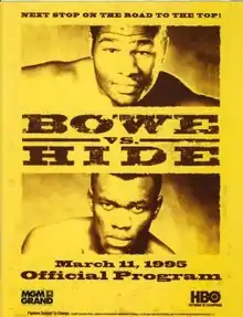 Herbie Hide vs. Riddick Bowe was a professional boxing match contested on March 11, 1995 for the World Boxing Organization Heavyweight Championship. The bout took place at the MGM Grand Garden Arena in Paradise, Nevada, USA, and was televised by HBO.