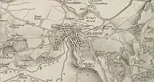 The town played an important role during the English Civil War; it changed hands a number of times. Despite its fortifications, it had a Royalist garrison imposed on it in 1642. The subsequent Siege of Reading by the Parliamentary forces succeeded in April 1643.[12] However, the taxes levied by the various parties left Berkshire 'in a miserable condition, hardly a sheep, hen, hog, oats, wheat, or any other thing for man or beast to feed upon'.[6] The town's cloth trade was especially badly damaged, and the town's economy did not fully recover until the 20th century.[6][13]