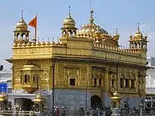 Domes appear frequently in Sikh architecture, which was greatly influenced by Mughal architecture. Most of Historical Sikh buildings were built towards the end of 18th century. Domes in Sikh architecture are mostly ribbed with lotus design at the top and floral motifs at the bottom. These domes start with wide base and reach maximum circumference when they are less than halfway up.[24]
