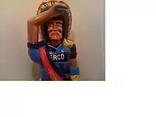 A 5 ft (2 m) wooden statue of a Native American 'Comanche' was spotted by the team as they passed a second hand shop on the way to Sincil Bank, Lincoln City for the last game of the season and decided that if they win and subsequently survive relegation they would purchase him as a lucky charm and he would become the club's mascot. The Wycombe Comanche was purchased and painted in Wycombe colours. He remained at the club throughout the Sanchez reign and he even featured in the centre of the squad photo in the 1999–2000 season. He was put on the centre circle before home matches at Adams Park. It is now believed to reside somewhere in Scotland.