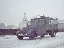 Few, or perhaps none of the then-available ambulances could meet these standards.[6][22] Ambulance design therefore underwent major changes in the 1970s. High-topped car-based ambulances were developed, but car chassis proved unable to accept the weight and other demands of the new standards; van (and later, light truck) chassis would have to be used instead.[6][22] The early van-based ambulances looked very similar to their civilian counterparts, having been given a limited amount of emergency vehicle equipment such as audible and visual warnings, and the internal fittings for carrying medical equipment, most notably a stretcher. Freedom House Ambulance Service was the first emergency medical service in the United States to be staffed by paramedics with medical training beyond basic first aid in 1967.[23] As time went on, ambulances matured in parallel to the newly developed EMS, gaining the capacity to carry additional equipment (both portable and permanently installed) as EMTs and paramedics added this equipment to their arsenal. Ambulance design also evolved to reflect the ergonomics and other human factors of emergency medical care (for instance, raising the roof higher than typical for a van). Advances in the technology and understanding of emergency vehicle equipment also continued to influence ambulance design, just as it did for police and fire-suppression vehicles.
