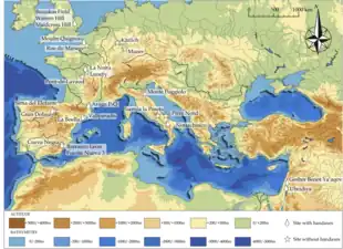 H. antecessor was producing simple stone tools at Gran Dolina. This industry is found elsewhere in Early Pleistocene Spain—notably in Barranc de la Boella and the nearby Galería—distinguished by the preparation and sharpening of cores before flaking, the presence of (crude) bifaces, and some degree of standardisation of tool types. This bears some resemblance to the much more complex Acheulean industry, characteristic of African and later European sites.[9] The earliest evidence of typical Acheulean toolsets comes from Africa 1.75 million years ago, but the typical Acheulean toolset pops up in Western Europe nearly a million years later. It is debated if these early European sites evolved into the European Acheulean industry independently from African counterparts, or if the Acheulean was brought up from Africa and diffused across Europe. In 2020 French anthropologist Marie-Hélène Moncel argued the appearance of typical Achuelean bifaces 700,000 years ago in Europe was too sudden to be the result of completely independent evolution from local technologies, so there must have been influence from Africa.[36] Wearing on the TD6 stone tools is consistent with repeated abrasion against flesh, so they were probably used as butchering implements.[9]