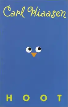 Hoot is a 2002 mystery/suspense novel, recommended for ages 9–12, by Carl Hiaasen.[1] The setting takes place in Florida, where new arrival Roy makes two oddball friends and a bad enemy, and joins an effort to stop construction of a pancake house which would destroy a colony of burrowing owls who live on the site. The book won a Newbery Honor award in 2003.[2]