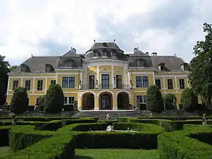 At the beginning of the 19th century, the House of Schwarzenberg was divided into two princely-titled lines (majorats).[1] This division was already foreseen in the will of Prince Ferdinand (1652-1703). However, the absence of two male heirs until Joseph II and Karl I Philipp inhibited the execution. The senior branch, which held not only the Palais Schwarzenberg in Vienna, but also the Dominions of Scheinfeld, Krumlov, Frauenberg and Murau, died out in the male line in 1979 upon the death of Joseph III of Schwarzenberg, who was the 11th Prince of Schwarzenberg. The cadet branch, which was established by Karl Philipp, Prince of Schwarzenberg at Orlík Castle, continues to the present day.