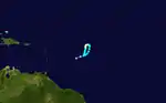 On September 22, a tropical wave moved into the eastern Caribbean Sea,[1] spawning a tropical depression near Hispaniola early on September 24.[4] As it tracked west-northwestward, the low dropped heavy rainfall, peaking at 4.42 in (112 mm) in Christiansted, United States Virgin Islands, as well as 11.9 in (300 mm) in Garzas, Puerto Rico.[15] In Puerto Rico, the rains caused landslides that affected seven towns, notably Ponce, the island's second-largest city.[16] There, at least 14 buildings were destroyed.[17] The floods left more than 1,000 people homeless, 300 of whom took refuge in a Red Cross shelter.[16] Overall, the flooding on the island killed four people and left moderate damage of around $1 million (1952 USD, $10.2 million 2023 USD).[1]