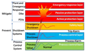 As the name suggests, these systems are not intended for controlling the process itself but rather protection. Process control is performed by means of process control systems (PCS) and is interlocked by the safety systems so that immediate actions are taken should the process control systems fail.