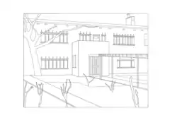 Inglesby was a white, two-storey rectangular building influenced by the Californian style architecture of the time, with a large garden buffering the house from the street. The building was structurally supported with a simple timber frame clad with white roughcast blocks. In terms of roofing, Desbrowe-Annear hinted at modernism by using a slightly pitched a tiled roof, but ensuring the roof appeared flat from the street. Moreover, each window incorporated small wooden eyelash like brackets, communicated with the wooden pergola, which divided the front garden. This use of exposed wood aimed to accentuate the importance of use of Australian timber and materials.[1] The porch in front of the building is a key feature of the house. This square enclosed space was a direct translation of Irving Gill’s style of modernism, through the use of uncomplicated openings, symmetry and simplicity. The porch dominated the façade and was a pioneering feature in contemporary Australian architecture due to the simplicity, elegance and proportionality of its white walls. Through Inglesby, Desbrowe-Annear began to question the role of ornamentation, proving that a simple shape can be just as bold and eye catching.[1]