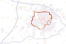 The Inner City Ring Road in Leipzig (also called Ring for short) in the district of Mitte is the ring road around Leipzig's city centre. It encloses the just 0.7 km² (0.27 sq.mi.) large area[1] of the old town without the former Vorstadts.