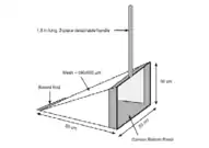 - Samplers without flow meters are long nets with a square mouth. The top of the net is above the water surface while the bottom edge is at the bottom of the stream. There are two iron rods that hold the net in place and are placed in the stream bed.[18] Disadvantage for this type of sampler is there is a possibility that the net can become clogged which yields back-flow. This will decrease efficiency and by having the net located close to the stream bed there is a possibility that non-drift organisms have the chance to enter the net.[18]The image to the left is an example of a sampler without flow meter.