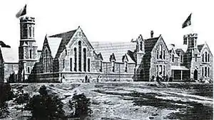 The first Board of Trustees, elected on 25 March 1862, called for plans and specifications to be submitted for the new school building. Architect Benjamin Backhouse made the only submission, and after a small problem with his initial design was overcome (he had forgotten to make provision for toilets), the plan was accepted. The original building (known as the Great Hall) was designed in a revival gothic style, and it was constructed by contractors John Ferguson and David McLaughlin.