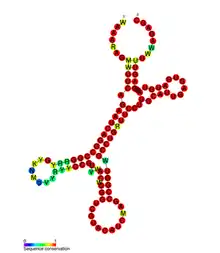 ![]() Secondary structure of iscR stability element RNA | |