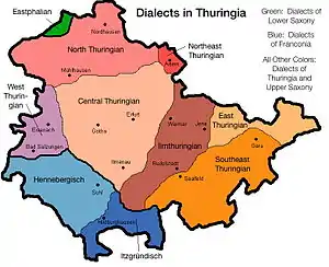 The zone of the Itzgründisch dialect includes south of the Rennsteig ridge in the district of Sonneberg, the eastern part of the district of Hildburghausen, the city and district of Coburg (the “Coburger Land”) and the northwestern part of the district of Lichtenfels.
