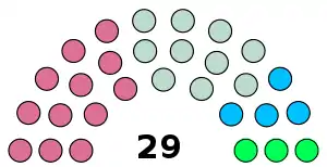 Political groups | Government (26) MDA (22) Opposition (7) |