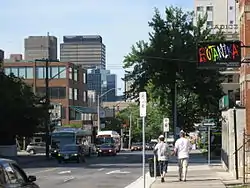 James Street is a Lower City arterial road in Hamilton, Ontario, Canada. It starts off at the base of the Niagara Escarpment from James Mountain Road, a mountain-access road in the city. It was one of many arterials in the central business district converted to one-way operation in 1956 when the city retained Wilbur Smith and Associates to develop a Traffic and Transportation Plan. Parts of it were restored to two-way operation in 2002. It extends north to the city's waterfront at the North End where it ends at Guise Street West right in front of the Harbour West Marina Complex and the Royal Hamilton Yacht Club.