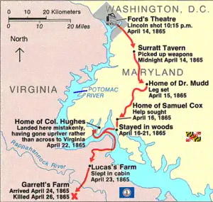 After the assassination, Booth and Herold made good an escape to Virginia. Prior to crossing the Potomac River and while hiding out in some woods, Herold killed Pumphrey's horse along with his own because the horses were no longer needed.