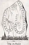 The so-called Jarlabanke's bridge is a causeway in Täby which was originally bordered by four runestones and many raised stones.[4] It is c. 116 metres long and 6.4 metres wide, and there were inscriptions (U 164 and U 165) by Jarlabanke both at the southern and the northern end of the causeway.[5] One of the runestones was moved during his lifetime to the location of the local assembly of the Vallentuna Hundred, where it received a new text and it was replaced with a new fifth one at Jarlabanke's bridge and which had a different design.[4]