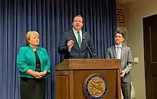 In December 2019, Plummer clashed with then Republican Caucus Leader, and Plummer's former 2010 running mate, Senator Bill Brady, over ethics issues.[30] In the fall of 2019, the Illinois House and Senate established a new ethics committee to study and recommend tougher ethical laws that might prevent abuses of power, corruption, or inside dealing within the legislature.[31] Plummer, who originally sought a position on the committee, received an appointment that he then declined to accept. Communications traded between Brady and Plummer eventually came out that showed Plummer refused the appointment because he claimed Brady offered him the appointment to the commission on the condition that Plummer would not file legislation to ban lawmakers' ability to profit on gambling, a bill supported by other senators but that would have impacted Brady personally.[32] According to media reports that later came out, Plummer had been openly pressuring Brady to pursue more stringent ethical reforms in private Senate Republican meetings, but the Minority Leader instead opted to embrace "low-hanging fruit” offered by Democrats.[33] Plummer, a first term senator at the time, received favorable commentary from other legislators and the media for his actions and subsequently filed a package of bills on topics relating to legislators' involvement in gambling and recreational marijuana investments, pay-to-play and lobbying activities, campaign spending activities, and other ethics-related topics.[34][35]