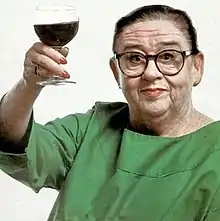 Jennifer Mary Paterson (3 April 1928 – 10 August 1999) was a British celebrity cook, author, actress and television personality who appeared on the television programme Two Fat Ladies (1996–1999) with Clarissa Dickson Wright. Prior to this, she wrote a cookery column both for The Spectator and for The Oldie.[1]