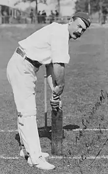 The star for the Australians was Trumper who scored 2,570 runs, easily beating Darling's own record for a colonial batsman in an English season set in 1899.[27] So important was Trumper to the Australian team that Darling, who had previously checked that all the Australians were on board the carriage to the ground, was later simply to ask "Is Vic aboard?" before giving the driver the go-ahead.[1] Darling himself had a mixed tour with the bat.