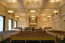 - There is a chapel used for the Sunday services of various downtown wards. The chapel contains a Casavant Frères pipe organ with 2,484 pipes in 45 ranks across two manuals.[10] The organ is characterized by a French accent.[10][11]