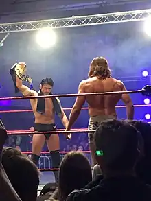In addition to the United States, through their working relationship with NJPW, he debuted for UK-based Revolution Pro Wrestling (RPW) at their Summer Sizzler 2016 event on July 10, unsuccessfully challenging Zack Sabre Jr. for the British Heavyweight Championship.[91] In November 2016, Shibata returned to RPW at Global Wars UK, a cross-promoted show with NJPW. On first night, he defeated Zack Sabre Jr. to win the British Heavyweight Championship,[92] and then successfully defended the title against Chris Hero on second night.[93] On January 21, 2017, Shibata made another successful title defense against Matt Riddle at RPW's High Stakes event.[94] He lost the title back to Sabre at NJPW's 45th anniversary show on March 6 thanks to an assist from Minoru Suzuki and Suzuki Gun.[95]