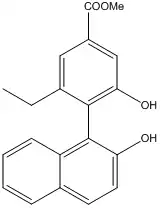The Brenna group developed a synthesis for a binol analog, shown below, which can be resolved into its enantiomers quite easily and used as a chiral auxiliary for stereoselective Keck allylations, showing in some cases improved enantiomeric excesses of up to 4% over the (R)-BINOL catalyzed allylations.[14] Additionally, the developed auxiliary also showed an NLE similar to the classic BINOL, allowing enantio-impure quantities to be used.