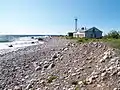 Keri was first mentioned in 1623. Keri has long been situated by important sea routes. Therefore, in 1719 a lighthouse was erected there on the order of Peter the Great. The present lighthouse was built in 1803.[1] During a well drilling in 1902 natural gas was discovered. From 1906 to 1912 the gas was used to power the lighthouse and heat the other buildings on the island. During that time it was the only lighthouse in the world to be powered by natural gas. In 1912 after a seismic impulse the gas flow stopped.[2] The island has been inhabited only by the families of the lighthouse keepers. The last keeper left the island in September 2002. Since then the lighthouse operates automatically; the power is derived from a wind turbine and solar panels.