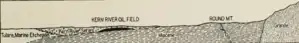 The deepest well in the Kern River Oil Field was originally drilled by Standard Oil of California, and attained a depth of 6,986 feet (2,129 m) below ground surface. The granitic basement rocks were of late Jurassic age.[5]