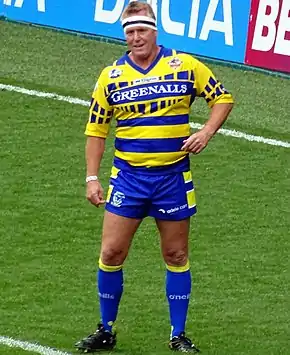 Kevin Ellis (born 29 May 1965) is a Welsh former professional rugby league and rugby union footballer who played in the 1980s, 1990s and 2000s. A Great Britain and Wales national representative. He played club level rugby union (RU) for Bridgend RFC, Maesteg RFC (two spells), Treorchy RFC, Sale Sharks, London Irish, Cardiff RFC, Pontypool RFC and Ebbw Vale RFC, at representative level rugby league (RL) for Wales, and at club level for Warrington Wolves, Workington Town, Gold Coast Chargers, Bridgend Blue Bulls and Celtic Crusaders, as a stand-off, scrum-half, or loose forward.[1][2]