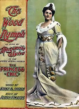 That same year La Shelle wrote the book and lyrics for The Princess Chic, a comic opera composed by Julian Edwards. The Princess Chic debuted at Boston's Columbia Theatre on January 16, 1900, with Minnie Methot in the title rôle,[19] before making its Broadway premier at the Casino Theatre some three weeks later.[20] After closing early in March 1900 The Princess Chic embarked on a road tour that, over the next several seasons, would see the Princess Chic of Normandy played by Christie MacDonald, who had assumed the rôle in Boston after Methot withdrew due to a nagging injury,[21] Marguerite Sylva, Maude Lillian Berrl and Vera Michelena.[22]