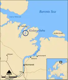 Kislaya Guba (meaning sour bay in Russian) is a fjord on the Kola Peninsula near Murmansk, Russia. The fjord is connected to the Barents Sea to the north and is primarily known as the site of the experimental tidal power project, Kislaya Guba Tidal Power Station.[1]