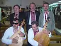 Heads of three Kobzar Guild (upper row)- Lviv (M.Khai), Kyiv (M. Tovkailo) and Kharkiv (K. Cheremsky) with first blind singers of new generation Olexandr Trius and Lajosh Molnar (lower row)