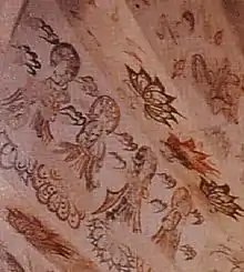 Buddhism was officially accepted by the Silla court only in 527 or 528 although the religion was known to its people earlier due to the efforts of monks from Goguryeo in the 5th century.[18][19] The late acceptance of the religion is often attributed to the geographic isolation of the kingdom, the lack of easy access to China, and the conservatism of the court. However, once Buddhism was accepted by the court, it received wholesale state sponsorship. One example of lavish state support is Hwangnyongsa, a temple which housed an approximately five-meter-tall Buddha.[18] The statue was revered as one of the kingdom's three great treasures and was destroyed by the Mongols after surviving for 600 years. Excavations have revealed several small pieces of the Buddha, and huge foundation stones remain to testify to the great size of the statue.[18]