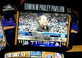 ![]() Johnson on scoreboard during an appearance at Pauley Pavilion in 2012. | |
