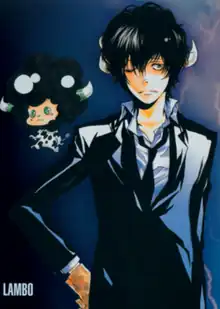 Lambo (ランボ, Ranbo) is a fictional character in the anime and manga series Reborn! created by Akira Amano. In the series, Lambo is an infant assassin who goes to Japan to kill the hitman Reborn. Upon his failure, he starts to live with Reborn's pupil, the future boss from the Vongola Mafia family Tsuna Sawada. As the series progresses, Lambo becomes one of Tsuna's six Vongola guardians, The Guardian of Lightning, and has to confront various enemies from the Vongola despite his young age. When Lambo shoots himself with the Ten-Year Bazooka (10年バズーカ) from Bovino family, he transforms into his future self from 10 years later nicknamed "Adult Lambo" (大人ランボ). His character has also been featured in CDs soundtracks and video games based on the Reborn! series.