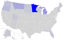Thirty-one states, in some cases as part of what has been called the English-only movement, have adopted legislation granting official status to English.[20][21][22] Typically only "English" is specified, not a particular variety like American English. (From 1923 to 1969, the state of Illinois recognized its official language as "American".)[23][24] Hawaiian, although having few native speakers, is an official language along with English of the state of Hawaii. Alaska has made some 20 native languages official, along with English;[25][26] for example, Alaska provides voting information in English, Iñupiaq, Central Yup'ik, Gwich'in, Siberian Yupik, Koyukon, and Tagalog language.[27] On July 1, 2019, a law went into effect making Lakota, Dakota, and Nakota the official indigenous languages of South Dakota.[28] French is a de facto, but unofficial, language in Maine and Louisiana, while New Mexico law grants Spanish a special status. The government of Louisiana offers services and most documents in both English and French, and New Mexico does so in English and Spanish.