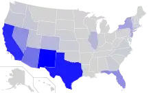 The issue of multilingualism also applies in the states of Arizona and Texas. While the constitution of Texas has no official language policy, Arizona passed a proposition in 2006 declaring English as the official language.[35] Nonetheless, Arizona law requires the distribution of voting ballots in Spanish, as well as indigenous languages such as Navajo, O'odham and Hopi, in counties where they are spoken.[36]