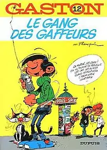 Le gang des gaffeurs, written and drawn by Franquin, is the thirteenth album of the original Gaston Lagaffe series. It is composed of 46 strips previously published in Spirou. It was published in 1974 by Dupuis.