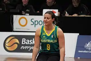 In 2008, Del Toso was named as a reserve for the Australia women's national wheelchair basketball team, known as the Gliders,[14] for the 2008 Summer Paralympics.[1] She made her national team debut at the 2009 Osaka Cup the following year, when her team finished first.[2][3] That year, she also participated in the Four Nations in Canada and the Japan Friendly Series,[2] one of six players who played for the Dandenong Rangers in the WNWBL.[15] She was selected to participate in a national team training camp in 2010.[16] In July 2010, she played in a three-game test series against Germany.[17] She was member of the Australian team at the 2010 World Championships that finished fourth.[2][18] She also played in the 2010 Osaka Cup where her team finished first.[1][2][3] She played in four games in the 2012 Gliders World Challenge.[2]