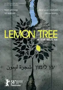 Lemon Tree (Hebrew: עץ לימון, romanized: 'Etz Limon; Arabic: شجرة ليمون, romanized: 'Shajaret Leimoun) is a 2008 Palestinian drama film directed by Eran Riklis and co-directed by his cousin Ira Riklis. It stars Hiam Abbass, Ali Suliman, Danny Leshman, Rona Lipaz-Michael, Tarik Kopty, Amos Lavi, Lana Zreik and Amnon Wolf.[2] The film describes the legal efforts of a Palestinian widow to stop the Israeli Defense Minister, her next door neighbor, from destroying the lemon trees in her family farm. At the same time, she develops a human bond with the minister's wife.[3]