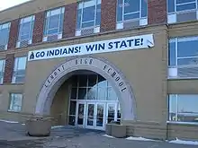 In February 2005, a school and community vote narrowly favored the name Titans over the Engines, a near homophone of the outgoing mascot name.[16] However, the Titans name was never officially adopted. Local elections later in 2005 brought in new school board members who fulfilled their promise to restore the school's original Indians mascot name. The school went without a nickname for the 2005-2006 school year, allowing time for a transition of logos and uniforms. Lemont officially returned to the Indians name beginning with the 2006-2007 school year.[14] The school board voted unanimously in July 2021 to phase out the Indians mascot.[7]